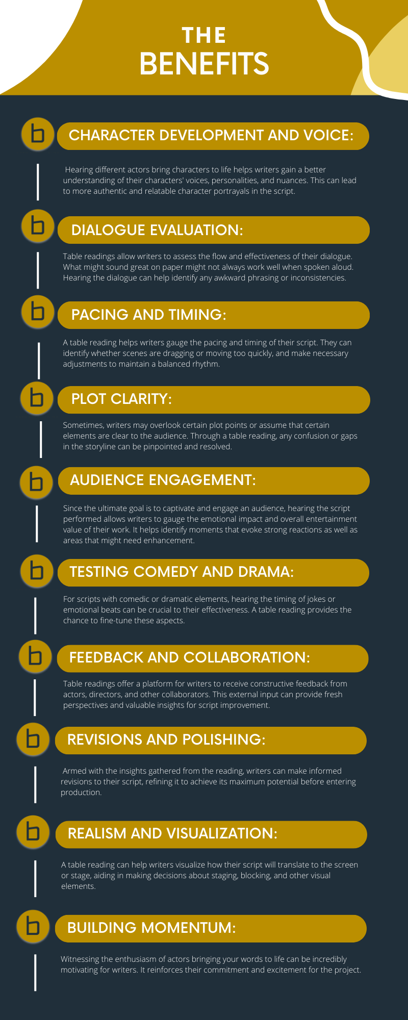 Services Are you ready to take your script to the next level and hear it come to life? We offer an incredible opportunity to host your scripts’ table reading with master scriptwriter Tammany Barton and our team of professional actors. Let your script be heard out loud, and watch as it reaches new heights. Contact us to find out more.